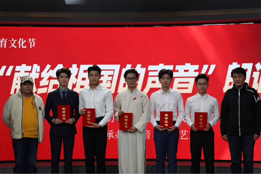 在本次朗诵大会中,由戏剧学院院长董亮老师指导,2019级播音与主持艺术专业李耀国、2020级播音与主持艺术专业王子安朗诵的《国之永怀》荣获“艺术表现特别奖”;播音与主持艺术系张骁将老师指导,2020级播音与主持艺术专业王子安朗诵的《我是一条古老的河流》荣获“优秀展映奖”,两位老师分获“优秀指导教师奖”,山东艺术学院荣获“优秀组织奖”。