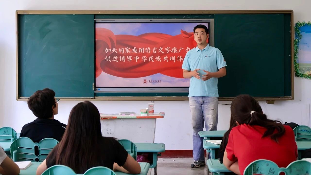 为解决这一问题,团队充分发挥专业优势,研发设计系列特色课程:《雅言筑基·认识普通话》《气韵生声·气息训练》《博古通今·古诗文朗诵》《声闻初识·自我介绍》《言泉思涌·即兴口语》《新声讲坛·演讲训练》等,从基础认知到专项提升,构建起阶梯式的言语学习体系。同时,在言语训练方法中融入语言文字与作文写作等教学内容,不仅增强中学生的口头表达能力,还提高他们的书面写作水平,让国家通用语言文字成为当地学生打开知识之门、连接广阔世界的 “金钥匙”。团队成员认真规划、高效协同,建立“授课+研讨”的工作模式。白天,团队成员倾情授课、耐心讲解,并全程记录、即时反馈。夜晚,全员复盘、优化教学设计、调整教学内容、精心制作教学课件,着力打造“实用性强、专业度高”的精品课堂。