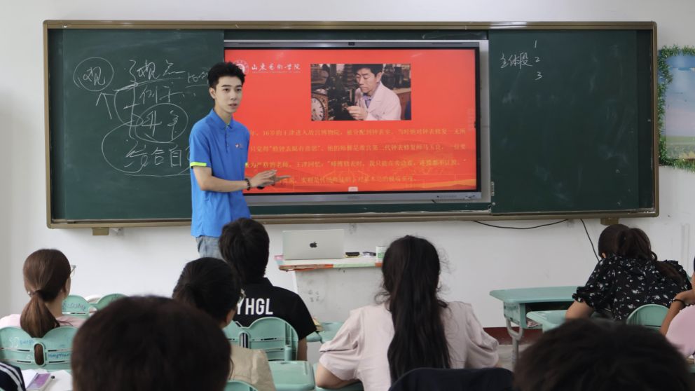 支教首日,董亮率先走上讲台,介绍了学校和团队的具体情况,希冀各位中学生们使用好国家通用语言文字这一“成长助力器”,在未来的学习和生活中勤学奋进、勇敢追梦,以开拓进取的胸怀眼界和奋勇争先的决心信念投身到家乡和祖国的建设中。“支教第一课”既点燃了英吉沙县青年学子的学习兴趣和美好憧憬,也明确了团队成员的教学方向和工作重点。
